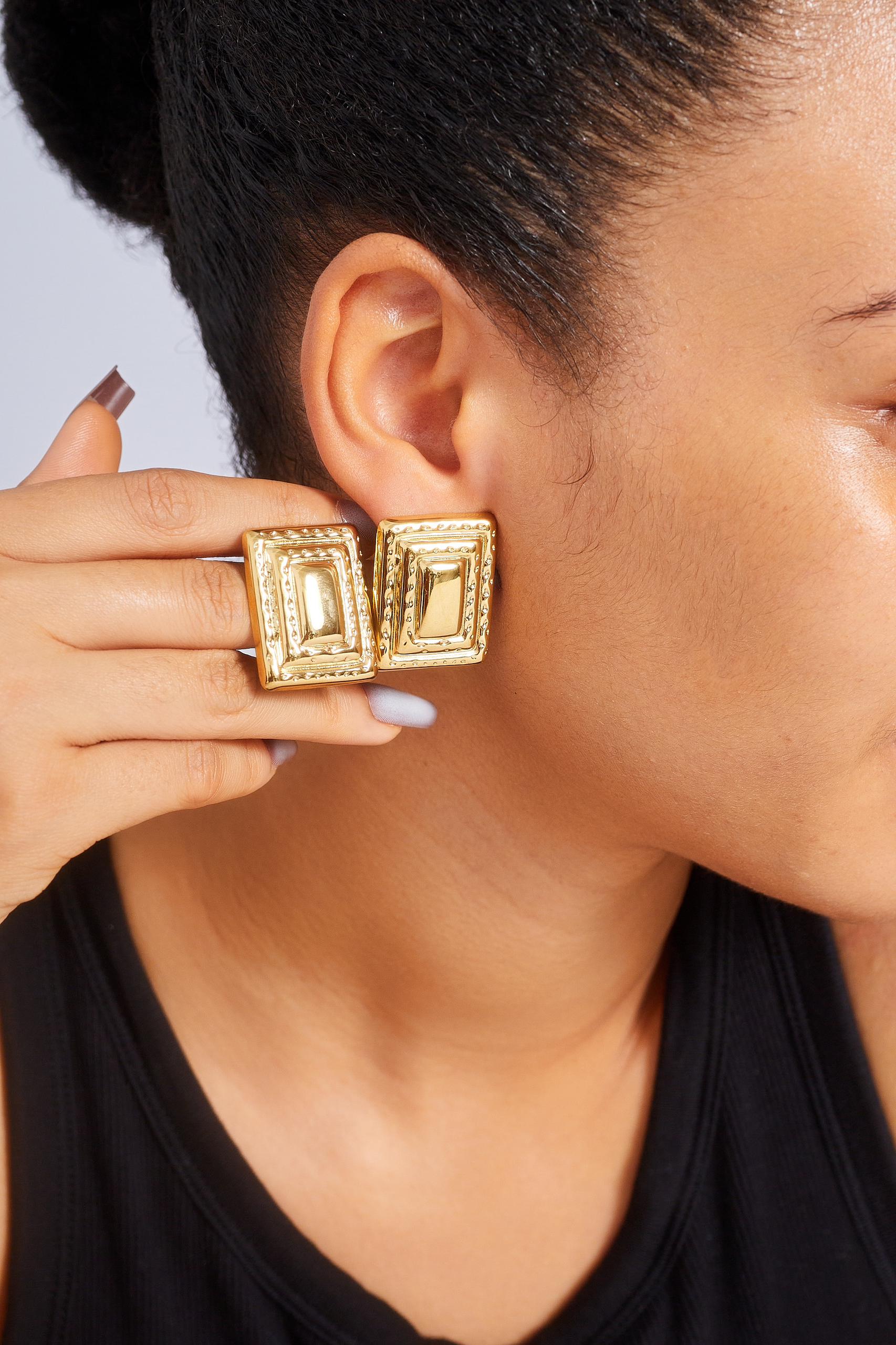 The Dire Two-Tone Earrings feature a sleek blend of contrasting finishes, creating a bold yet versatile accessory perfect for any occasion.