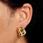 The Hollow Liquid Earrings feature a fluid, sculptural design with a glossy golden finish lightweight, modern, and effortlessly statement-makin