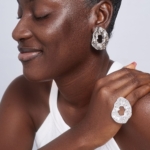 Lunar Mirage Silver Earrings – A sleek, moon-inspired design crafted in polished silver, reflecting timeless elegance and modern charm. Perfect for adding a touch of celestial sparkle to any look.