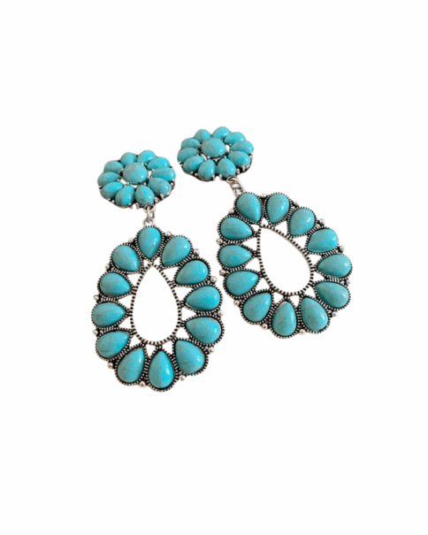 These eye-catching earrings feature vibrant turquoise stones creating a unique look. Perfect for adding a splash of colors. |