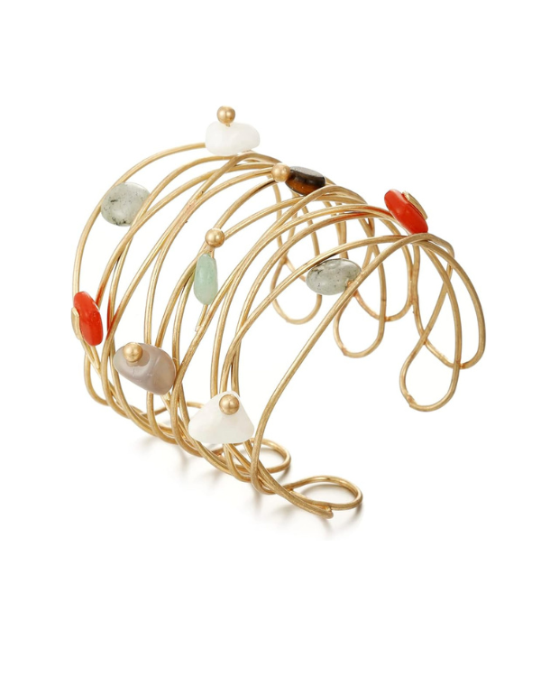 | Elevate your accessory collection with dazzling golden cuff bangles adorned with a variety of colourful stones |